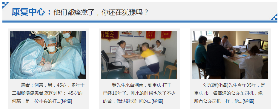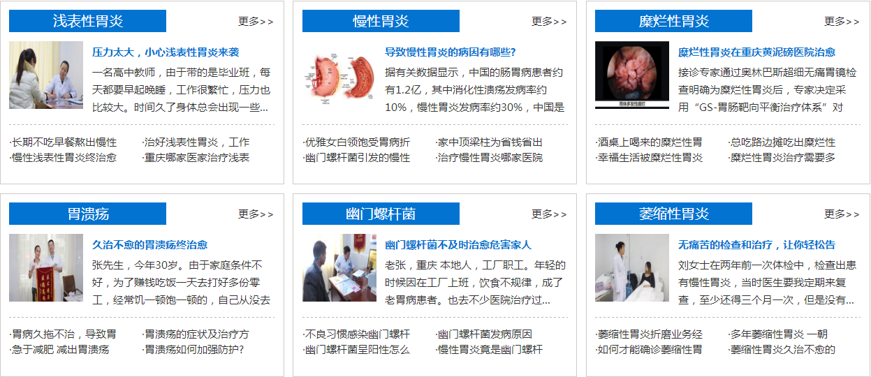 胃肠科以“一流的设备,一流的人才,一流的服务,一流的质量”的崭新姿态,以“救死扶伤 ”快速解决各类胃肠疑难杂症,以医生“全心全意为人民”的一流服务意识,展示良好的精神风貌、可靠的服务质量、满意的服务态度,不断努力,争创西南地区胃肠专业第一品牌。