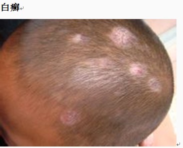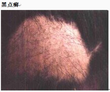 头部损害与白癣相近似,亦呈鳞屑斑片,但病变面积较小而数目比白癣多。此外,病发表现同白癣略有差异,主要呈低位性断发,往往在距头皮1~2mm部位折断,有些甚至一出头皮便断。这时观察患处头发仅见有黑点状的残留毛根,故名黑点癣。