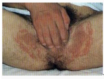 股癣绝大多数为成人男子,女性甚少见。常为单侧,也可两侧对称分布。病情严重者,皮损可向上蔓延直达下腹部;往后扩展波及到臀部;向下延伸而累及股部他处。
