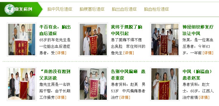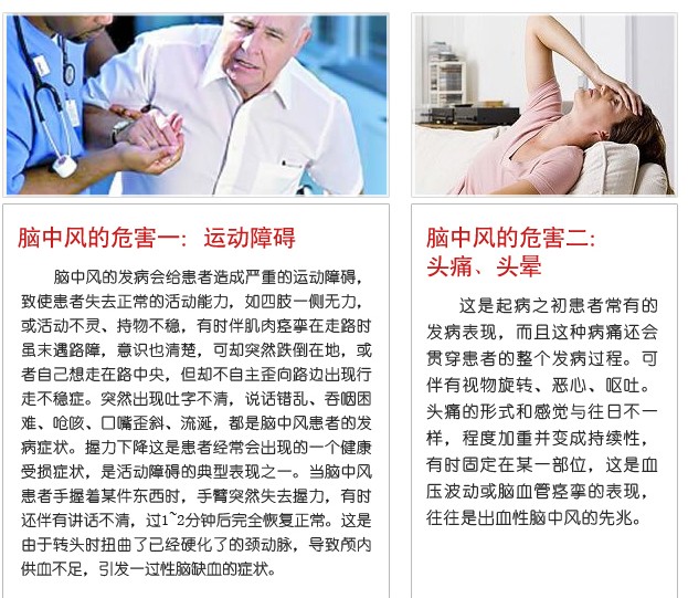 中风偏瘫:由脑血栓、脑出血、脑萎缩致偏瘫、失语、痴呆、吞咽困难、大小便失禁。