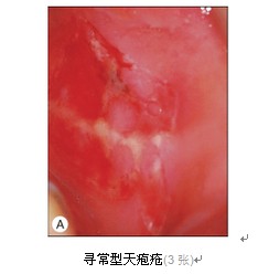 在面颊部(图3)及其它“脂溢性”部位出现落叶型天疱疮典型的鳞屑性、结痂性皮损。在一开始,“红斑型天疱疮”一词用来描述同时具有红斑狼疮和天疱疮的免疫学特点的患者,如在体IgG和C3在角质形成细胞表面和基底膜带的沉积,与循环抗核抗体同时存在。但是,实际仅有少数患者被报道同时患有两种疾病。