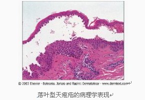 落叶型天疱疮、红斑型天疱疮、巴西落叶型天疱疮的病理学改变各不相同。