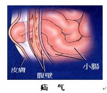 2. 腹内压力增高,如慢性咳嗽、便秘、排尿困难、婴儿经常啼哭、举重、呕吐等使腹内压增高将腹腔脏器经腹壁薄弱处挤出一个小口袋状称疝囊。绝大部分脏器可以回入腹腔称可复性疝,有的则须轻揉才能回复。有的腹壁缺口较小,而用力挤出的腹腔脏器不能回复称嵌顿疝;有的压迫了血管,仅突出的脏器缺血称为绞窄性疝。绞窄性疝能造成突出的脏器环死。突出物如是肠管则可造成肠梗阻、肠坏死、穿孔、腹膜炎等。也可从腹壁穿破形成粪瘘。疝形成后,随着脏器反复突出则疝囊逐渐扩大
