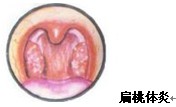 (三)检查:急性病客,面颊赤红,口有臭味,舌被厚苔,颈部淋巴结,特别是下颌角处的淋巴结往往肿大,并且有触痛。白细胞明显增多。根据局部检查可见到不同类型扁桃体炎有不同表现。急性充血性扁桃体炎亦称急性卡他性扁桃体炎,主要表现为扁桃体充血、肿胀、表面无脓性分泌物。急性化脓性扁桃体炎含急性隐窝性扁桃体炎和急性滤泡性扁桃体炎,表现为扁桃体及腭弓明显充血,扁桃体肿大;隐窝型表现隐窝口有黄白色脓点,有时渗出物可融合成膜状,不超出扁桃体范围,易于拭去而不遗留出血创面;滤泡型主要表现为扁桃体实质之淋巴滤泡充血,肿胀、化脓,扁桃体形成蛋白色小隆起。
