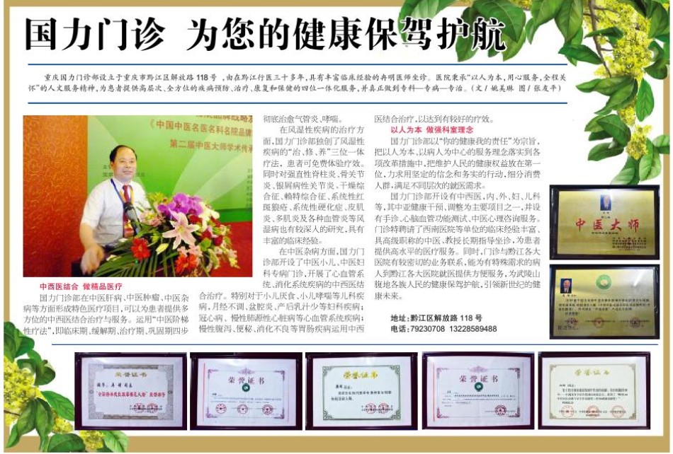 重庆冉明诊所 地址:黔江区解放路118号 电话:13896800113 传真: 023-79230708 手机:13228589488 邮编;409000 网址: www.rmmz120.com E-mail:1034939929@qq.com
