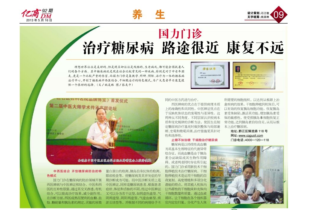 2012年5月19日在北京当选为中国中医名医,汇编入《中国中医名医名科名院品牌博览》(上图,56周岁时照)