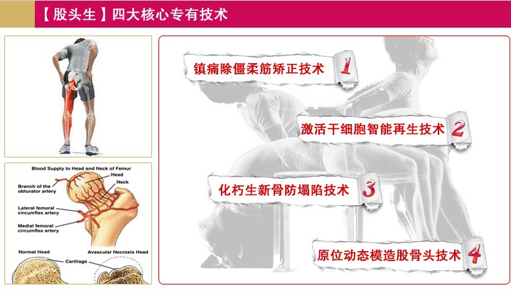 西医对股骨头坏死的治疗,除了少部分采用非手术疗法和介入疗法外,一般患者均采用手术方法进行治疗。虽然各种手术都有其优缺点,但因其费用昂贵、局限性广等而不易被患者所接受。况且,患有其它手术禁忌症的患者和老幼患者还不宜接受手术治疗。