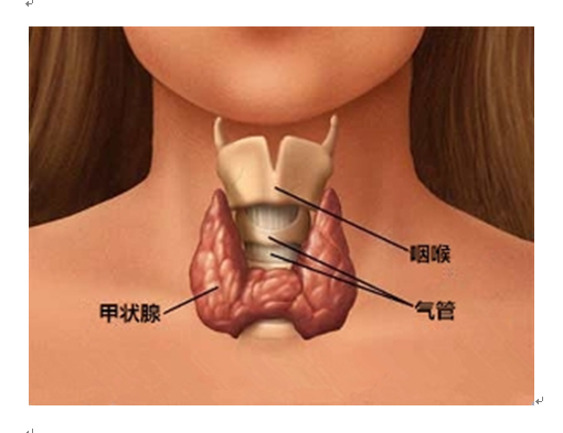 ②甲状腺为程度不等的弥漫性对称肿大。肿大程度与病情不一定平行,由于腺体中血管扩张和血流加快,在肿大的甲状腺上可听到杂音,或可以摸到如猫喘一样的颤动。
