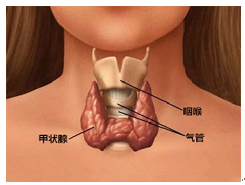 ②甲状腺为程度不等的弥漫性对称肿大。肿大程度与病情不一定平行,由于腺体中血管扩张和血流加快,在肿大的甲状腺上可听到杂音,或可以摸到如猫喘一样的颤动。